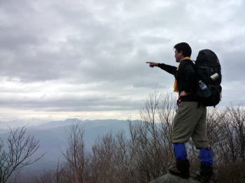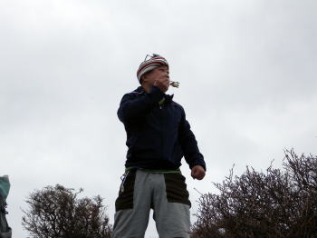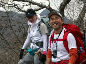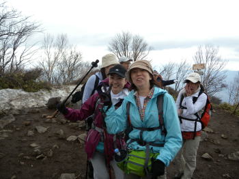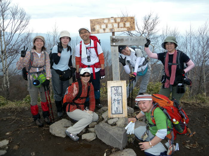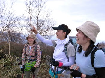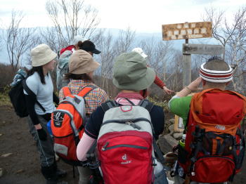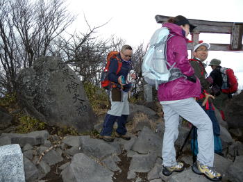 標準タイムより早く赤城山の最高峰、黒檜山(1,828m)に到着です。いつの間にか信笑さんは“抹茶親分”に変身していました。