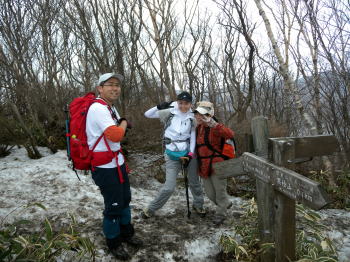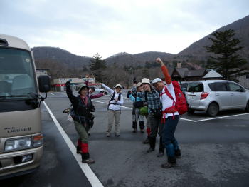 黒檜山登山口に到着です。ICI石井スポーツ使用で決めた“なめちゃん”と“たみー”と“信笑さん”のザックが光っています。・・・なめちゃんは45ℓザックで登場!