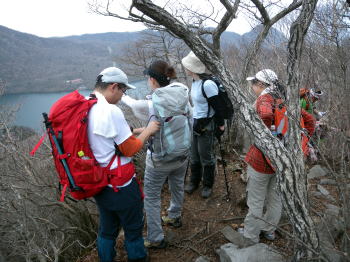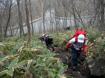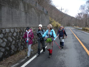 スタートはちょっとしたトラブルにより高崎を40分遅れとなりましたが、全員が状況を気持ちよく受け入れてくれました。自然探索倶楽部メンバーの柔軟な対応はさすがです。気持ちよく、更に気合いを入れてイザ出発です。赤城大沼湖畔大洞駐車場より黒檜山登山口まで、ウォーミングアップ方々、車道を歩きます。