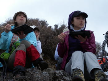 川口VS上田の花盛り二人娘 が地蔵岳を見つめ、早くも登りたがっているのでは?