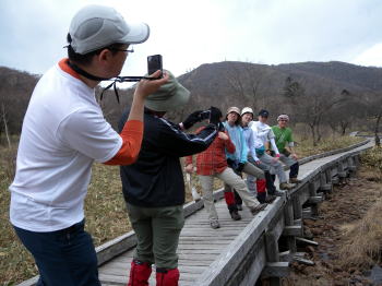 皆さん続々と下山口へ到着です。赤城の小尾瀬と呼ばれることもある湿原『覚満淵』へ。