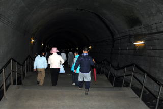 第一目標の日本一のもぐら駅は天候が悪くても安心・・安全の地下の中!私以外は、初めて体験する大清水トンネンル内にある地下ホームまで約71メートルも標高を下げていきます。 恐らく、「行きは良い良い、帰りは怖い」のパターンが予測できますが・・・? |