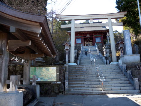たみーさんがまだまだ続く長い石段を眺め、アレッ!?