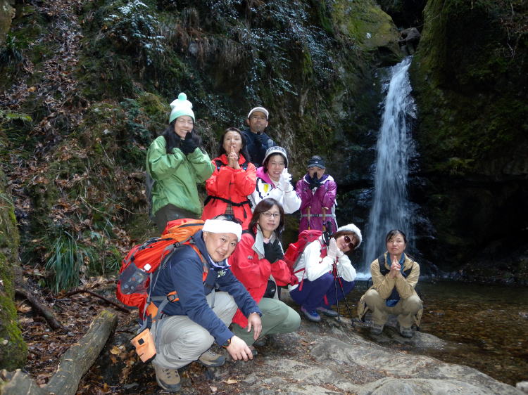 七代の滝へ行くには標高を一挙に下げます。やがて清流のせせらぎが聞こえてきます。七代の滝は岩に囲まれ、付近には高木が林立し、日中でも薄暗い場所です。滑るので転ばないよう注意します。