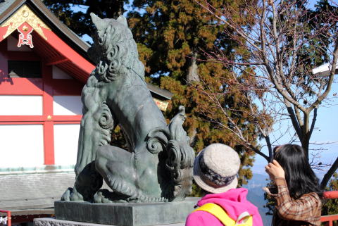武蔵御嶽神社には立派な狛犬が二匹います。ワイルド系が好きなお姉さん方はムキムキな狛犬に凛々しさを感じています。