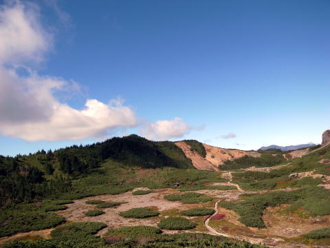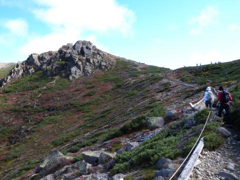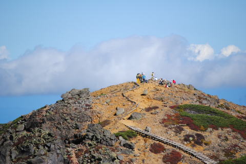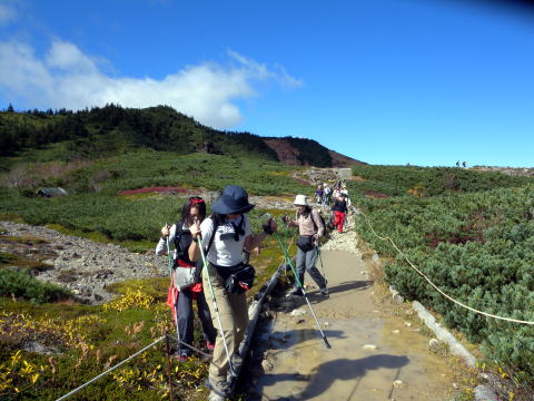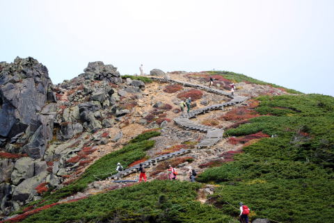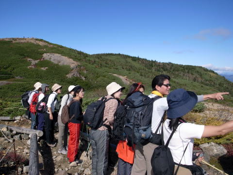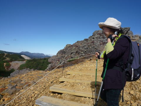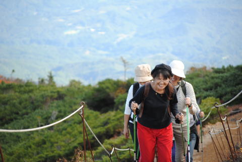 展望台が見えてきます。森林限界を越えた眺望に、みなさんの足取りも軽くなってきます。