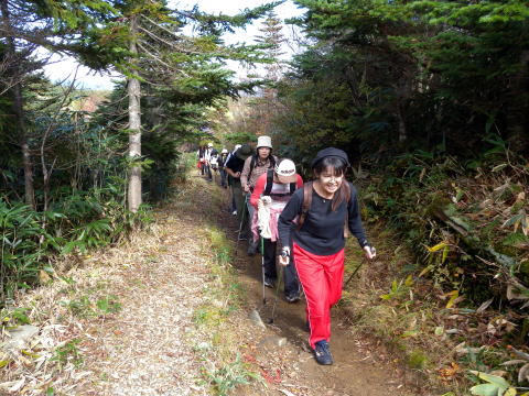 天気も上々、山道を元気な“はなさん”が皆を引き連れ、スタートです。既に一般ハイカーを普通に追い越しての勢いです。