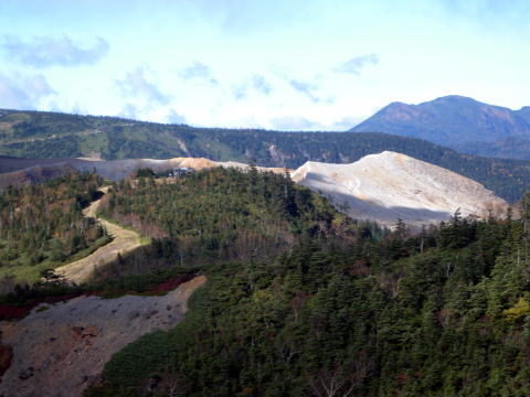 最終目的地の湯釜方面を望みます。鏡池周回コースから逢ノ峰頂き経由で向かいます。