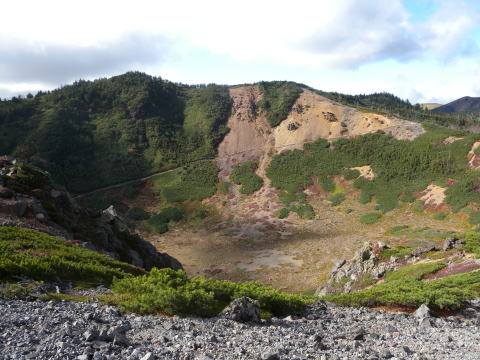 日本百名山著者の深田久弥氏によりますと、古代円形ローマ劇場を思わすかのような噴火口跡です。