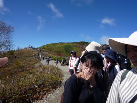 皆さんの表情は次第にヤングに変わっていきます。本白根では沢山のハイカーが往来していますが、THSCチームが一番元気です。