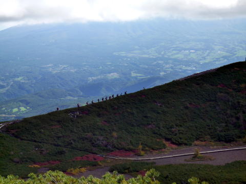 尾根沿いに最高地点に向かう私たちは蟻の行列みたいです。
