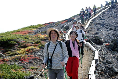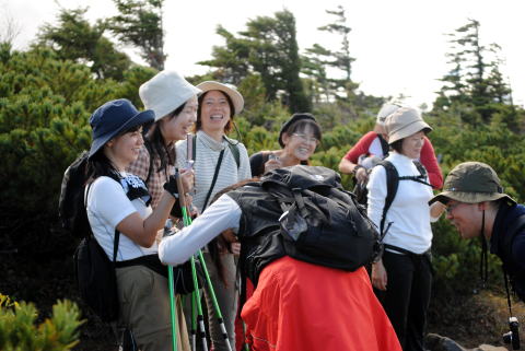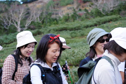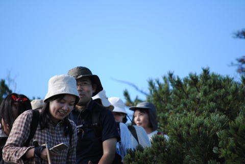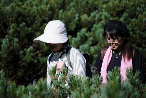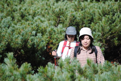 ハイマツの中の登山道は、皆さん慎重に歩きます。