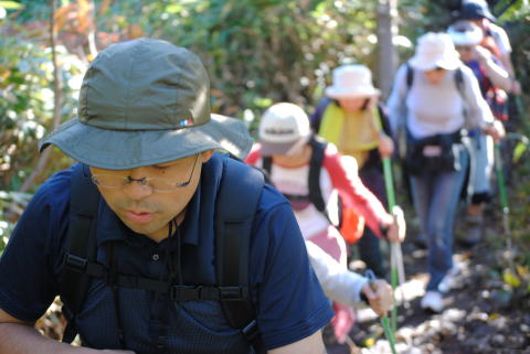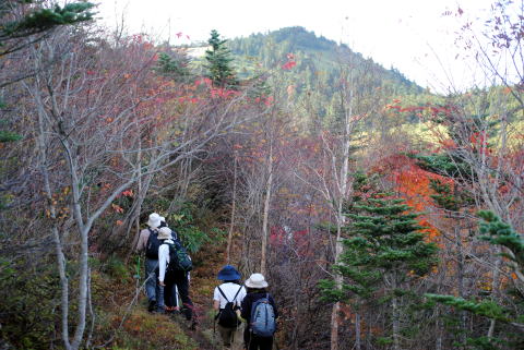 帰りは殆ど私たちのグループで貸切みたいです。見渡すと紅葉ポイント付近までまで標高を下げて来ました。