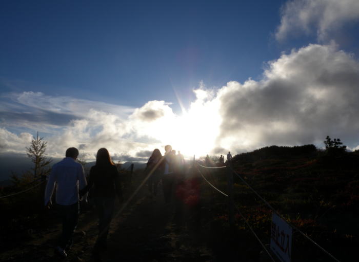 方言や外来語が飛びかう中、黙々と登っていきます。