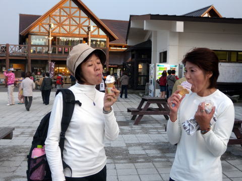 全行程を終え、若返ったよだっぴさんとアリスさんは、一挙にソフトクリームを頬張ります。山歩きの後はソフトクリームが最高ですね。
