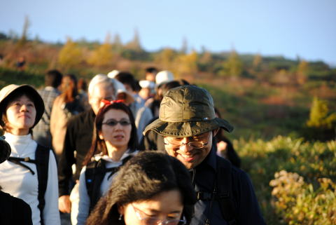 駐車場から展望台へ続く遊歩道は沢山の人達の往来で賑やかです。