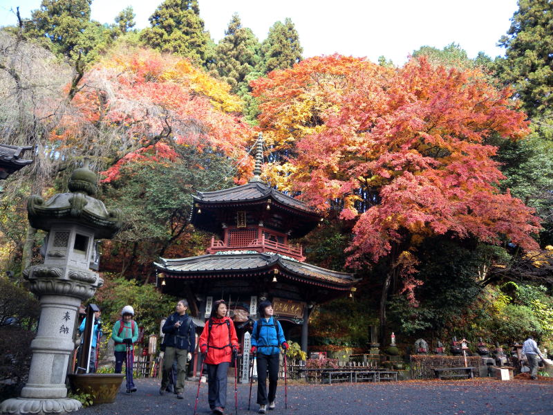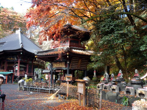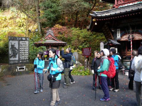 時間が早いのでまだまだ水沢観音は静寂しています。紅葉の中のお参りになり、皆の気分も上々です。