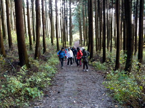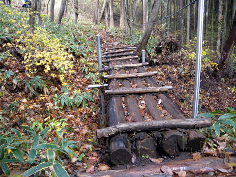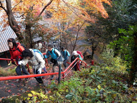 まずは、こてしらべの急階段で、落ち葉を踏みしめながら登ります。