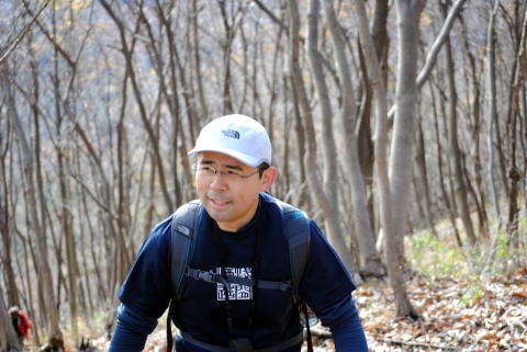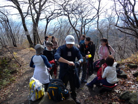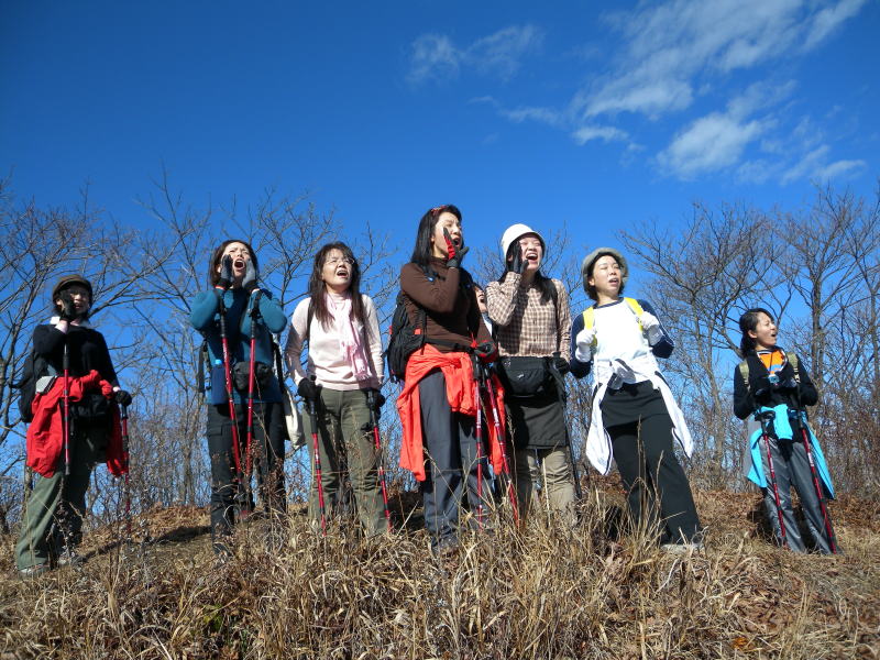 水沢神社から山頂に見えた偽ピークの東肩です。名月赤城山を背に清々しい表情のメンバーです。
