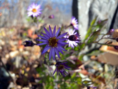 石仏群に可愛い花(野紺菊???)が沢山咲いていました。