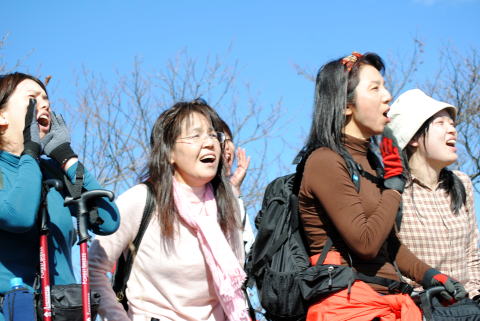 もうすぐで東肩の石仏群の到着ですが、皆さんの表情はハツラツ笑顔!