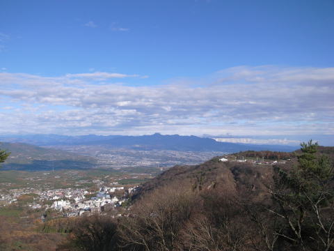 伊香保森林公園入口手前の見晴台から望む、伊香保温泉と赤城山
