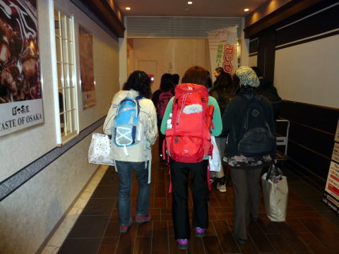ヤマダ電機内のレストラン階を颯爽と歩くみなさんは、なぜかザックと調和しています。