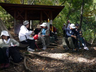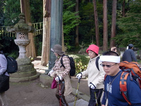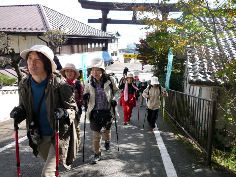 神社の階段の往復は、中間道のトレッキングが始まる前に疲労感を味わい、初参加の○○さんの頭には不安が過ります。