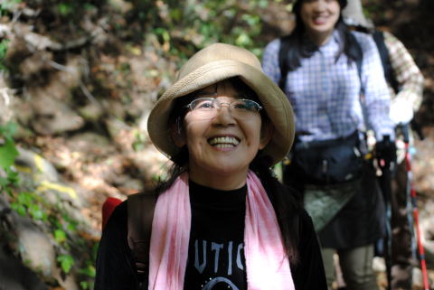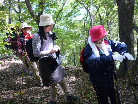 フル参加のはなさんは、皆さんと自然を楽しみながら歩きます。よく見ると、元気なゆめさんはステッキを使っていません。