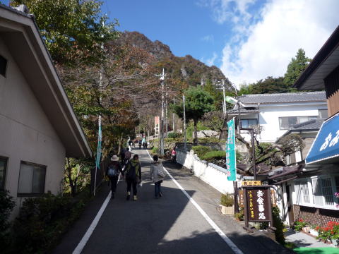 妙義神社まで緩い坂の車道を歩いていきます。ウォーミングアップ方々、ステッキを使う慣らし歩きで神社へ向かいます。