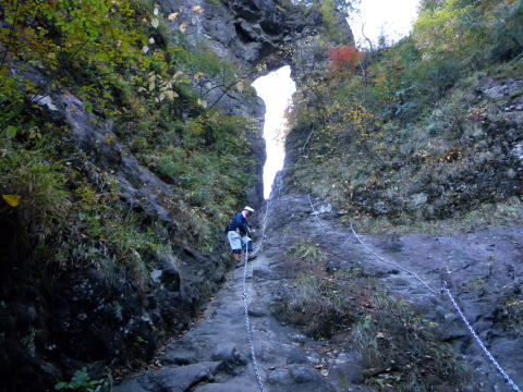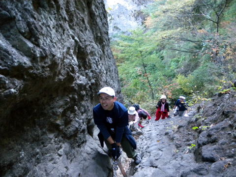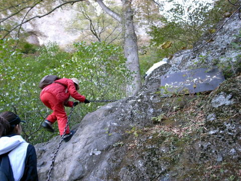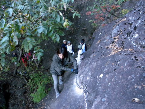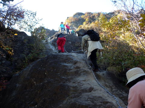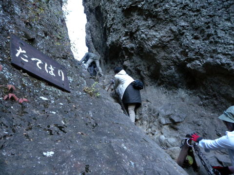 第二グループがやって来ました。天狗のひょうてい手前の鎖場は大渋滞でやっとTHSCグループが登り始めますが、皆さん難なくクリアー!