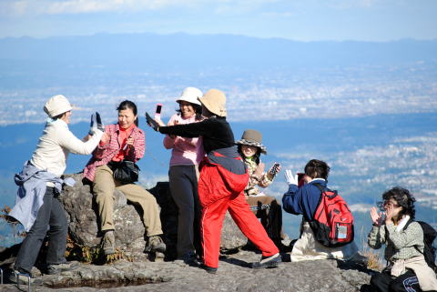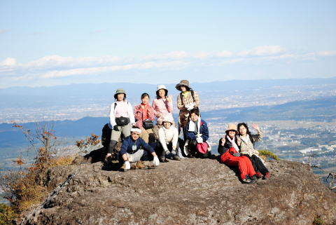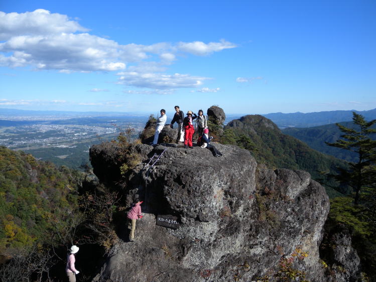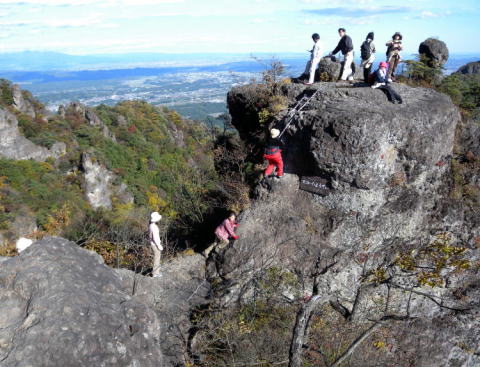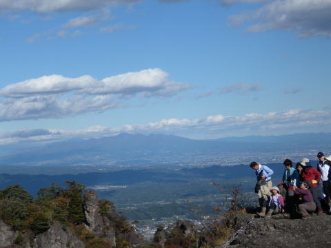 天狗のひょうてい岩はいつのまにか年齢層が高くなっています。後方には赤城山の裾まで良く見えます。