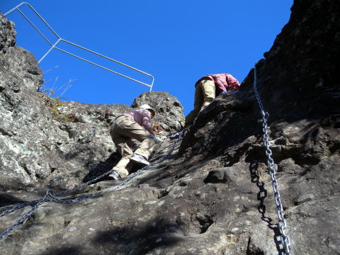 帰りの鎖場でおしゃべり坊やが恐怖感で固まっていたので大渋滞です。数分待ってやっと登れました。それにしても口が達者の天才児でした。