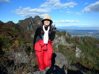 天狗のひょうてい岩ピークで余裕のポーズです。