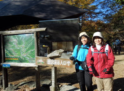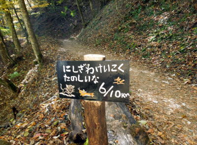 午前9時。思った以上に早い到着です。雀のオブジェの手すりを抜けると、西沢渓谷への入り口があります。距離はおよそ10Km、高低差は220m。