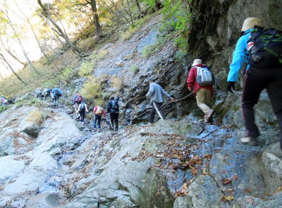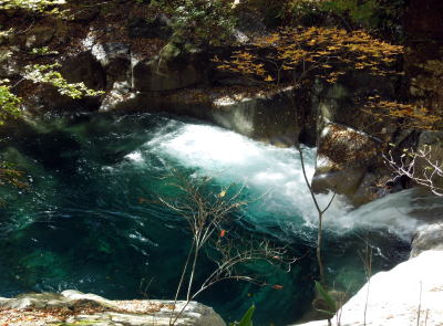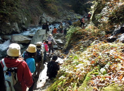 険しい渓谷に道を切り開くのは大変な作業だったでしょうと想像させるような場所もありますが、マナーを守って歩けば安全です。何ヵ所か大きな岩盤から落ちる滝があります。