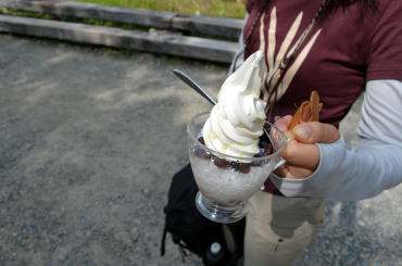 ブルーハワイ氷ソフトクリームと練乳アズキ氷ソフトクリームは冷えひえで頭の芯まで爽やかです。濃厚なソフトクリームは病みつきになる美味しさでした。