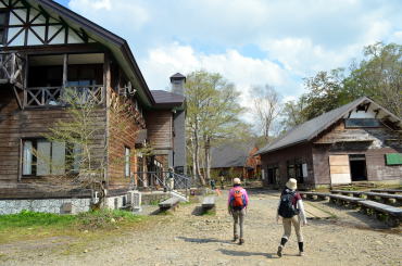 なんと!? 尾瀬では桜がまだ咲いています! 尾瀬ロッジで一息です。