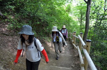 稲荷山コース最終登りは約244段の階段で、坂道より階段の方が息が切れるところです。