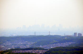 少し頑張ると稲荷山へ到着!東屋のある休憩所で一休憩です。稲荷山からの眺望です。八王子市内や埼玉ドーム、新宿の副都心ビル群も確認できます。
