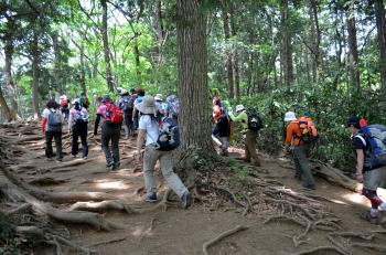 沢山の登山者と一緒に行列になって登って行きますが、パワフルな女性陣は徐々にハイスピードに変わっていき頑張っていました。