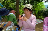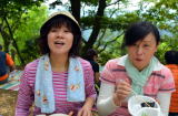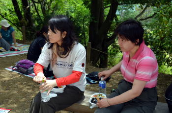 仲間と一緒に山頂で食べるご飯は格別なものです。 甘党の抹茶親分は、デザートに大好物のアイスクリームを吸いついていました。