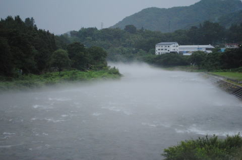 | 食事感想会で本日の苦労と豊富を語ります。 夕方は大雨になり、上流のダムは放流の為、利根川はしぶきを上げ、豪快に流れます。