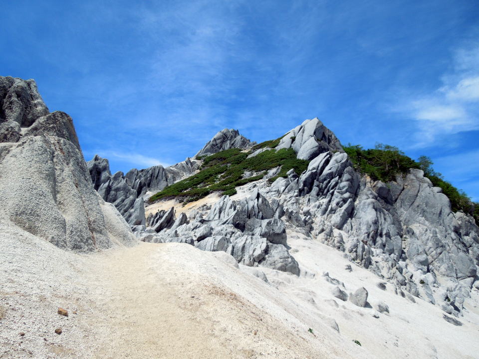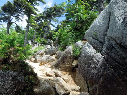 燕岳山頂への道は、花崗岩のモニュメントで不思議な雰囲気を漂わす素晴らしい空間です。