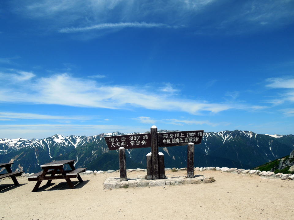 燕山荘の入口付近には、眺望のよいベンチがあり、アルプスの全容を見る事ができます。