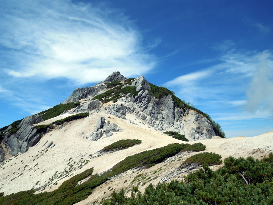 燕岳の山頂を目指します。ガイドブックで良く目にする山容と同じです!花崗岩の白い砂の美しい山に見惚れます。