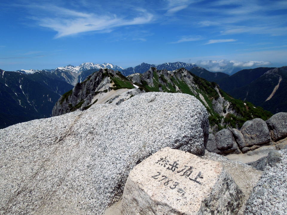 燕岳山頂から望む北燕岳。後方には立山〜剣岳〜〜〜白馬岳〜鹿島槍ヶ岳等のBigな山並みも一望できます