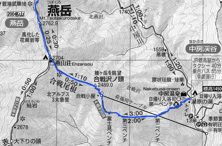 燕岳 標高2,763m 標高差約1,369m 歩行距離約10q yahoo地図