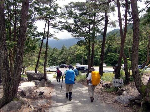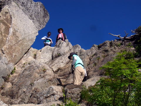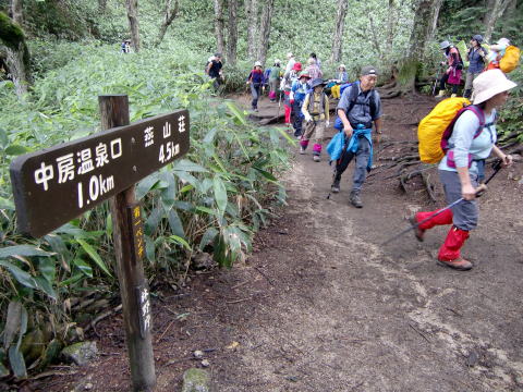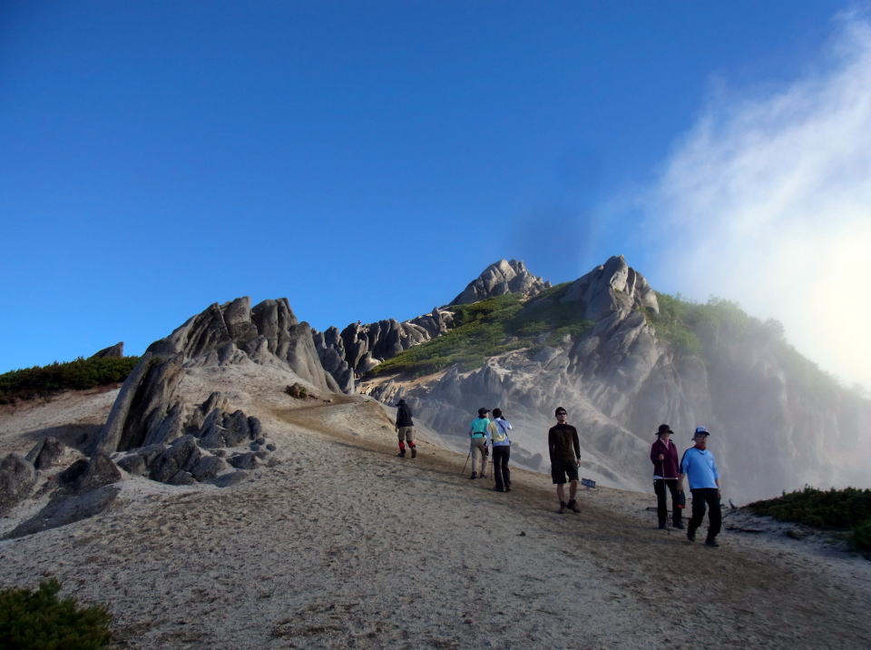 | いよいよ下山です。私とアリスは、登山口よりも20〜30分下まで車を取りに行かなければならないので、皆さんより急ぎ足でおります。殆ど休憩なしで・・・(とは言っても、120人など大団体が来たり、登り優先の為、待つことも多くなり、なかなか降ろさせてもらえません)、下山します。 |