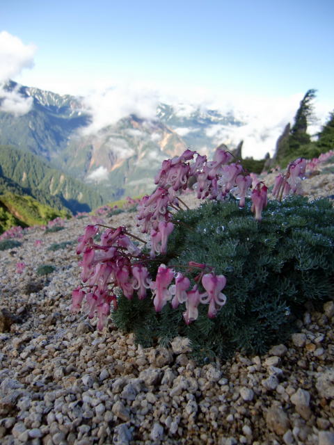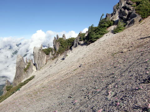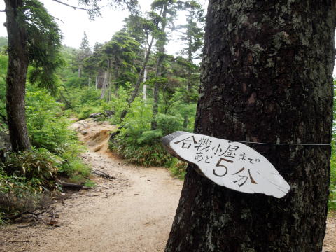 合戦小屋を過ぎると森林が開けてくると同時に高山植物があちこちに見られるようになります。思ったよりコースタイムも早く、山荘までののこり1時間くらいのコースを写真をとりながらゆっくりと登っていきます。